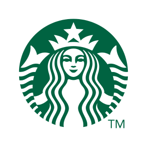 - Starbucks — o nome da marca aparece dentro de um selo circular com a sereia no centro.